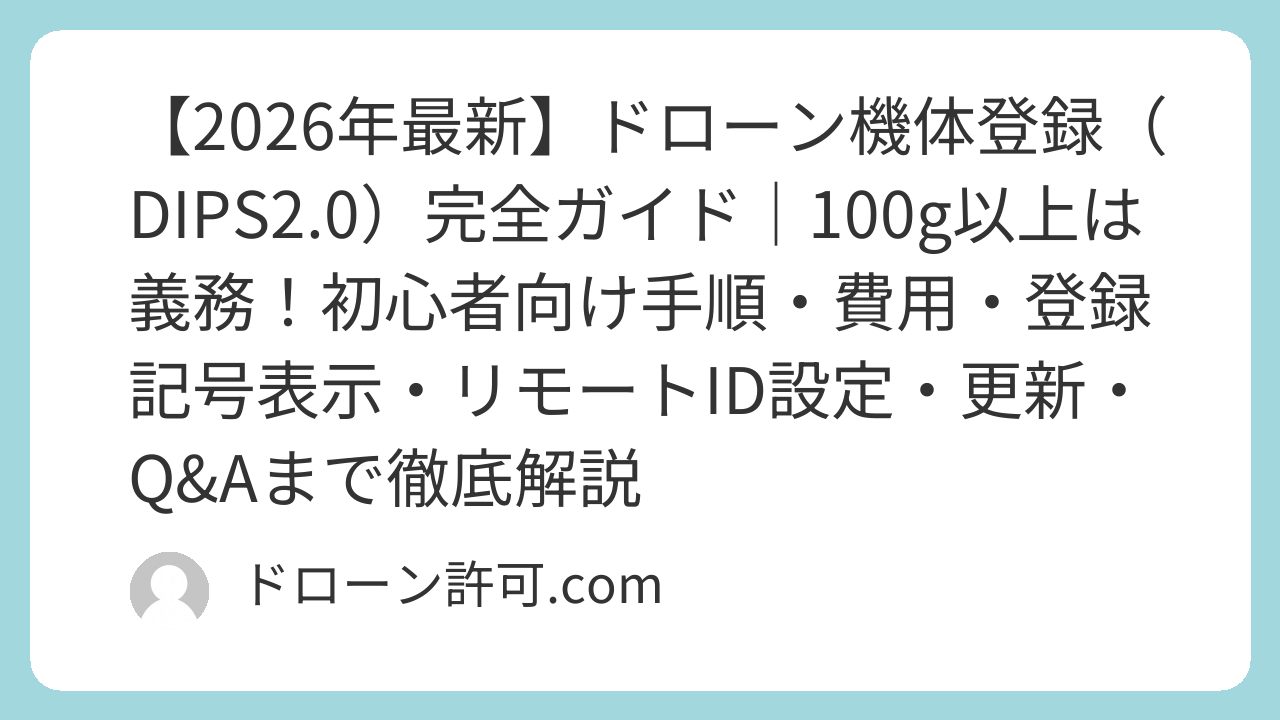 【2026年最新】ドローン機体登録(DIPS2.0)完全ガイド|100g以上は義務!初心者向け手順・費用・登録記号表示・リモートID設定・更新・Q&Aまで徹底解説